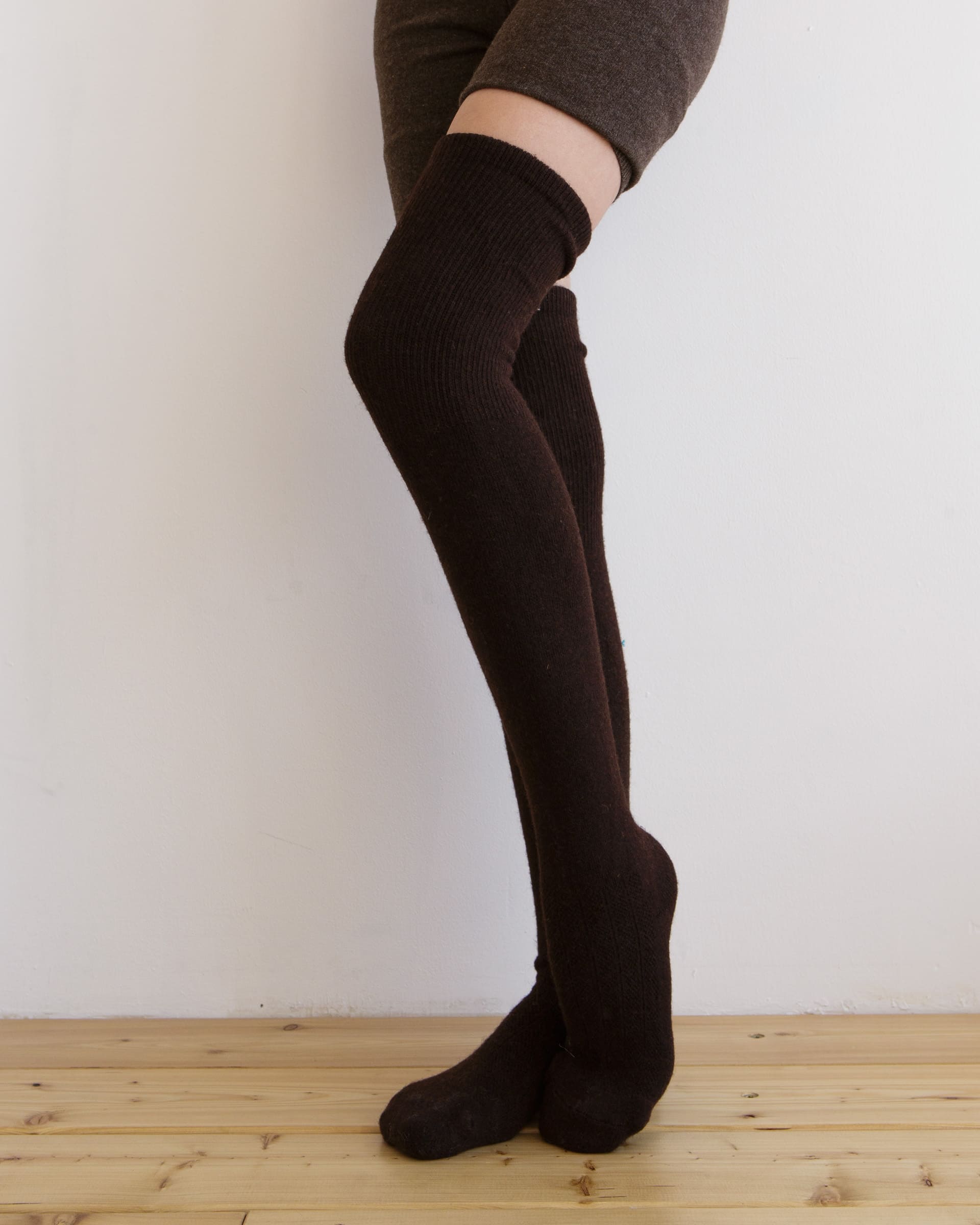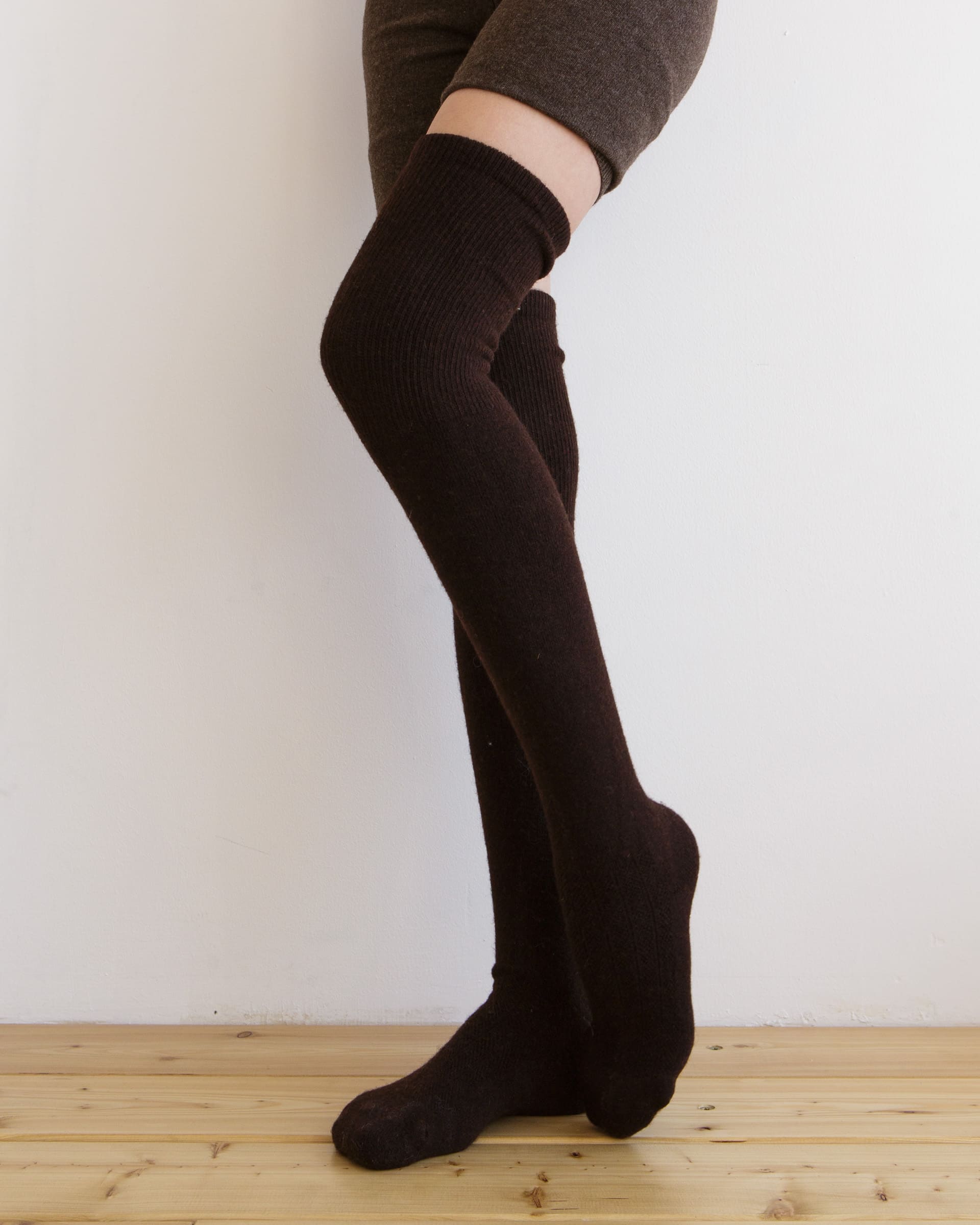 Теплые чулки из монгольской шерсти темно-коричневые