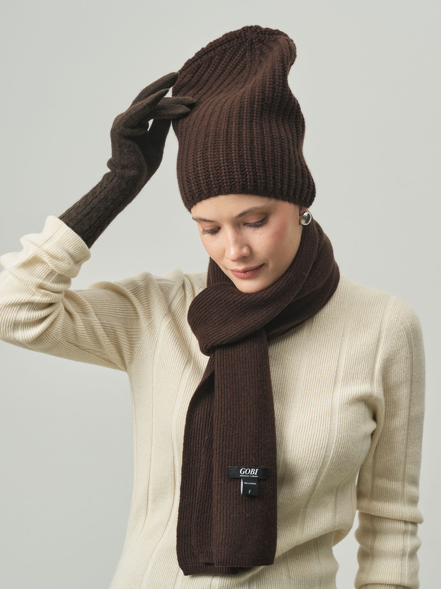 Шапка из кашемира KU101353-F шоколадный