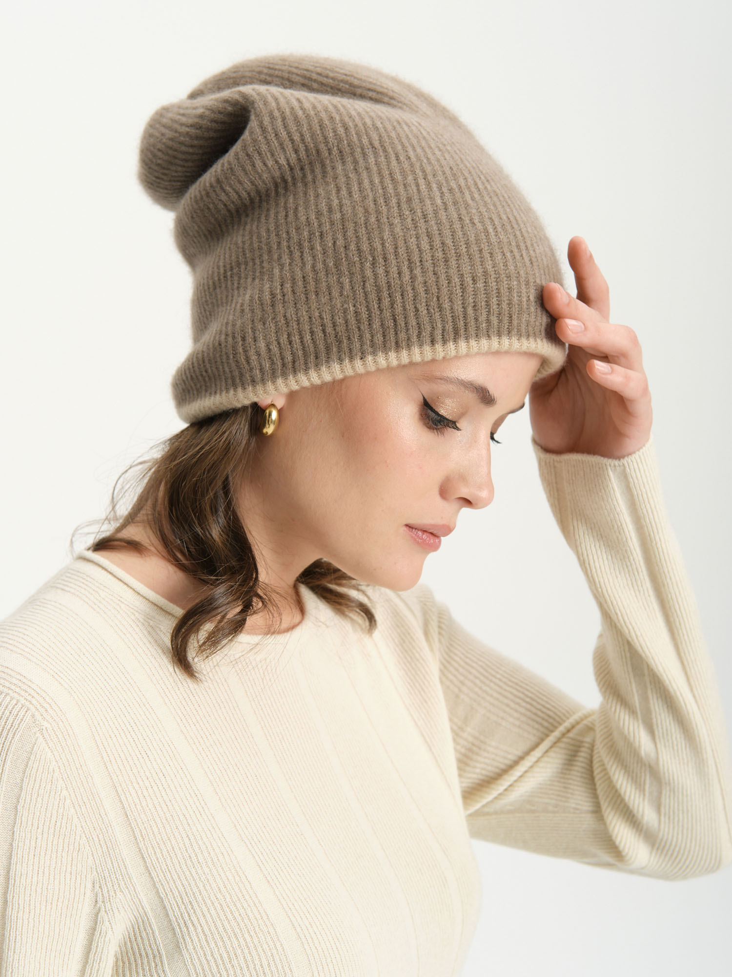 Шапка кашемировая двухсторонняя бежевая-капучино