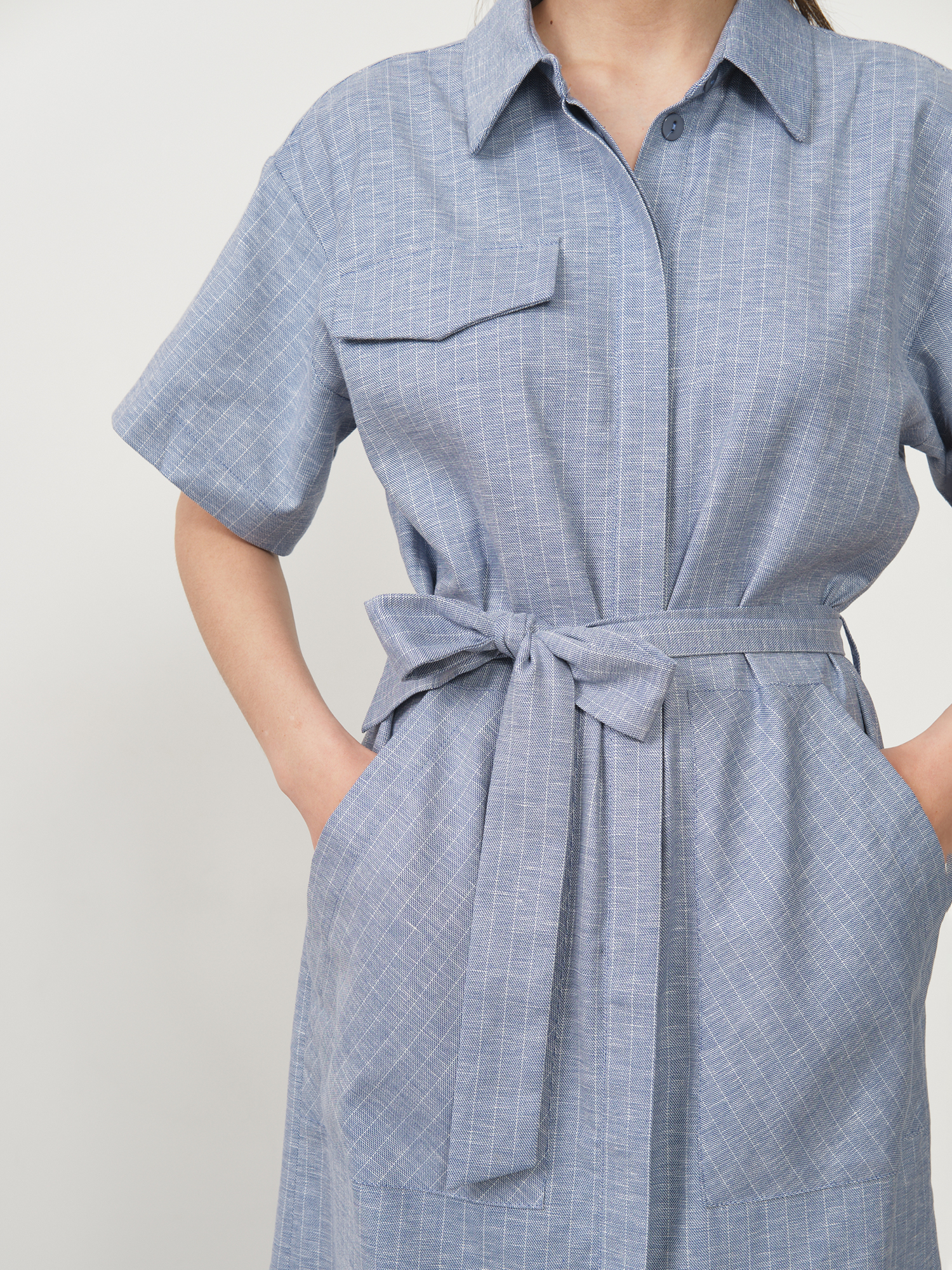 Очень красивое и удобное платье! И карманы и пояс, все к месту. На работу просто чудо. Лен, ткань приятная к телу. Для высоких. |