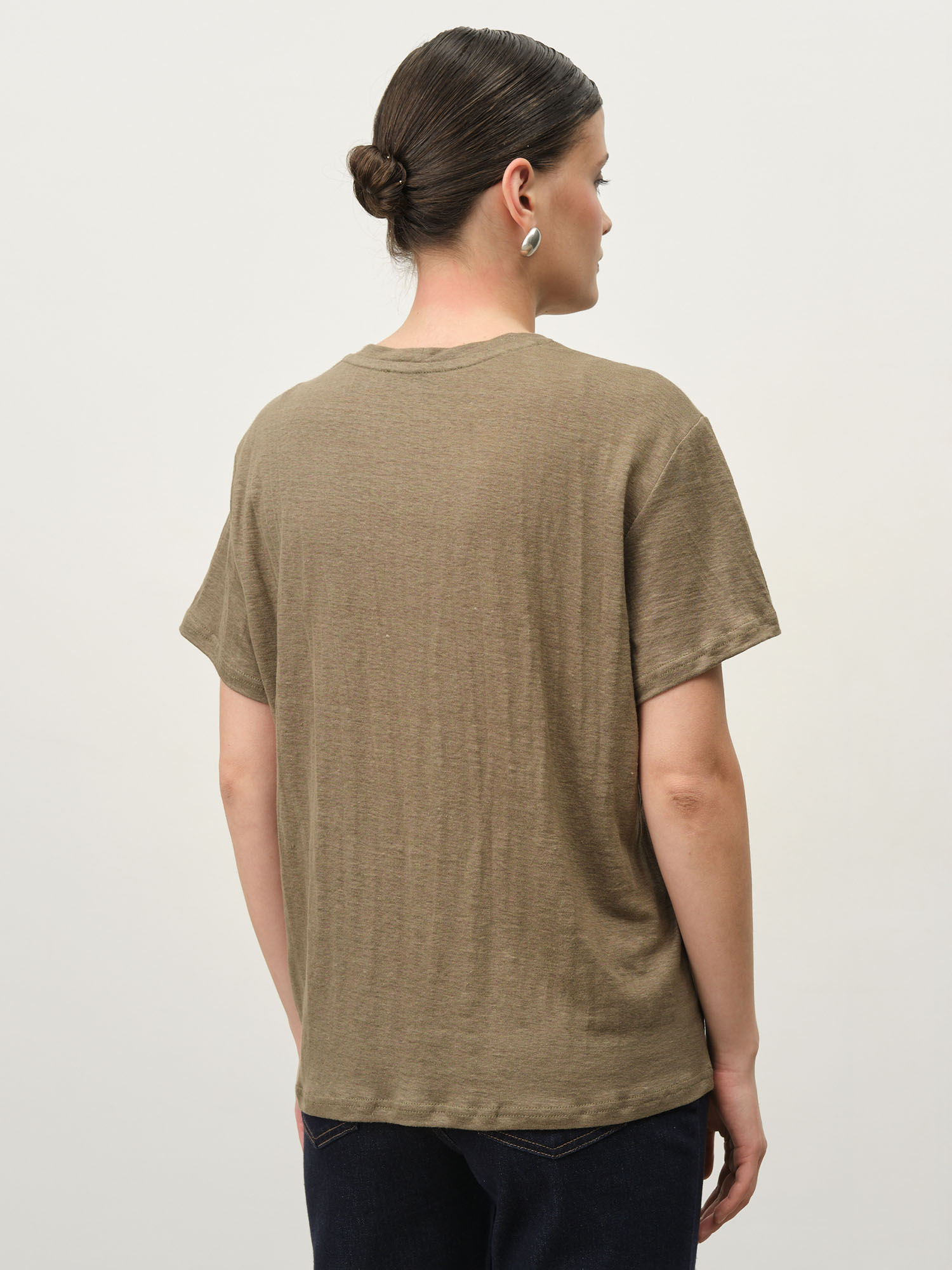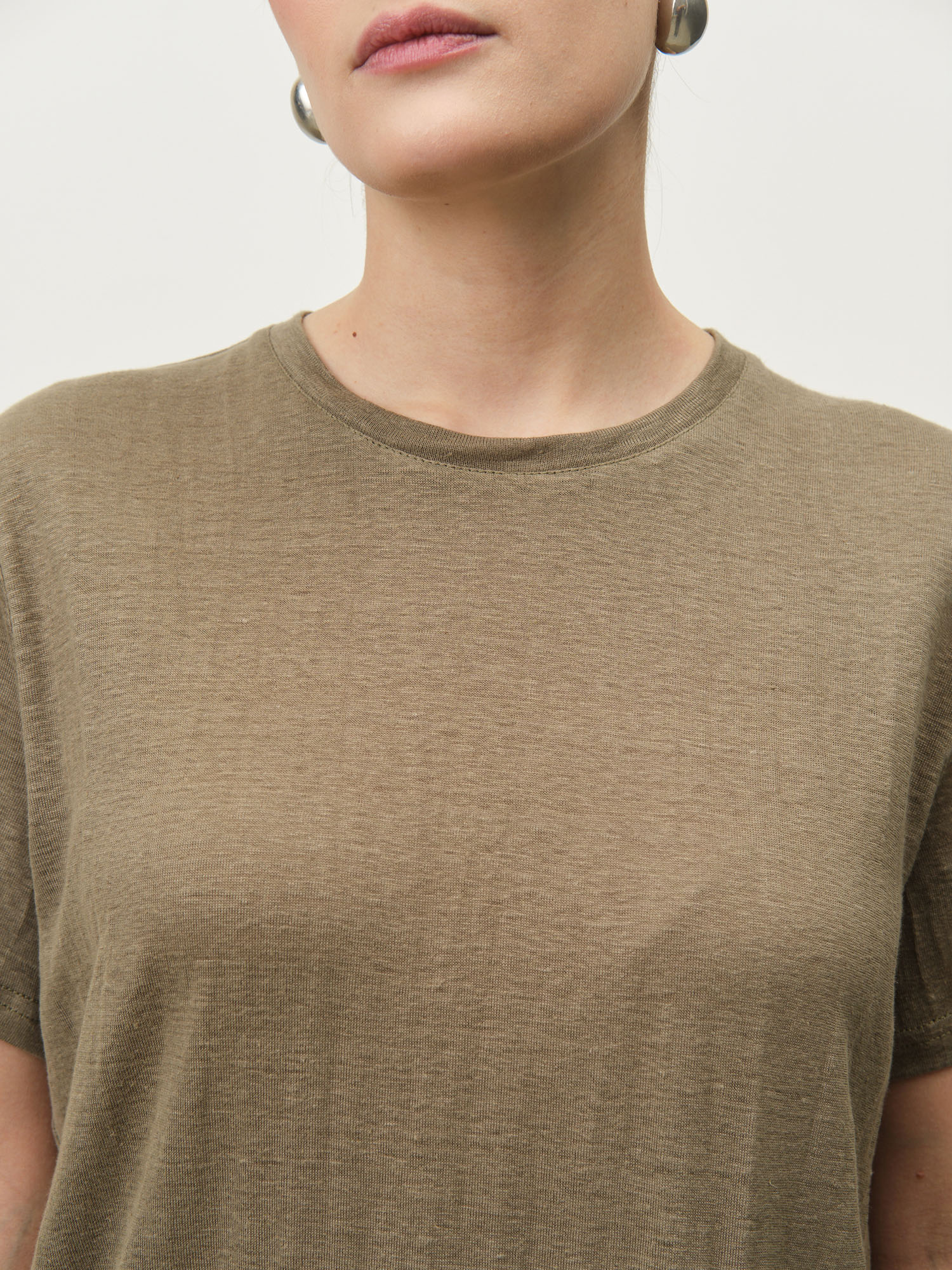 Цвет хаки — это универсальный и стильный оттенок, который никогда не выходит из моды. Он отлично сочетается с другими нейтральными оттенками и яркими акцентами, что делает футболку идеальной для создания различных образов.