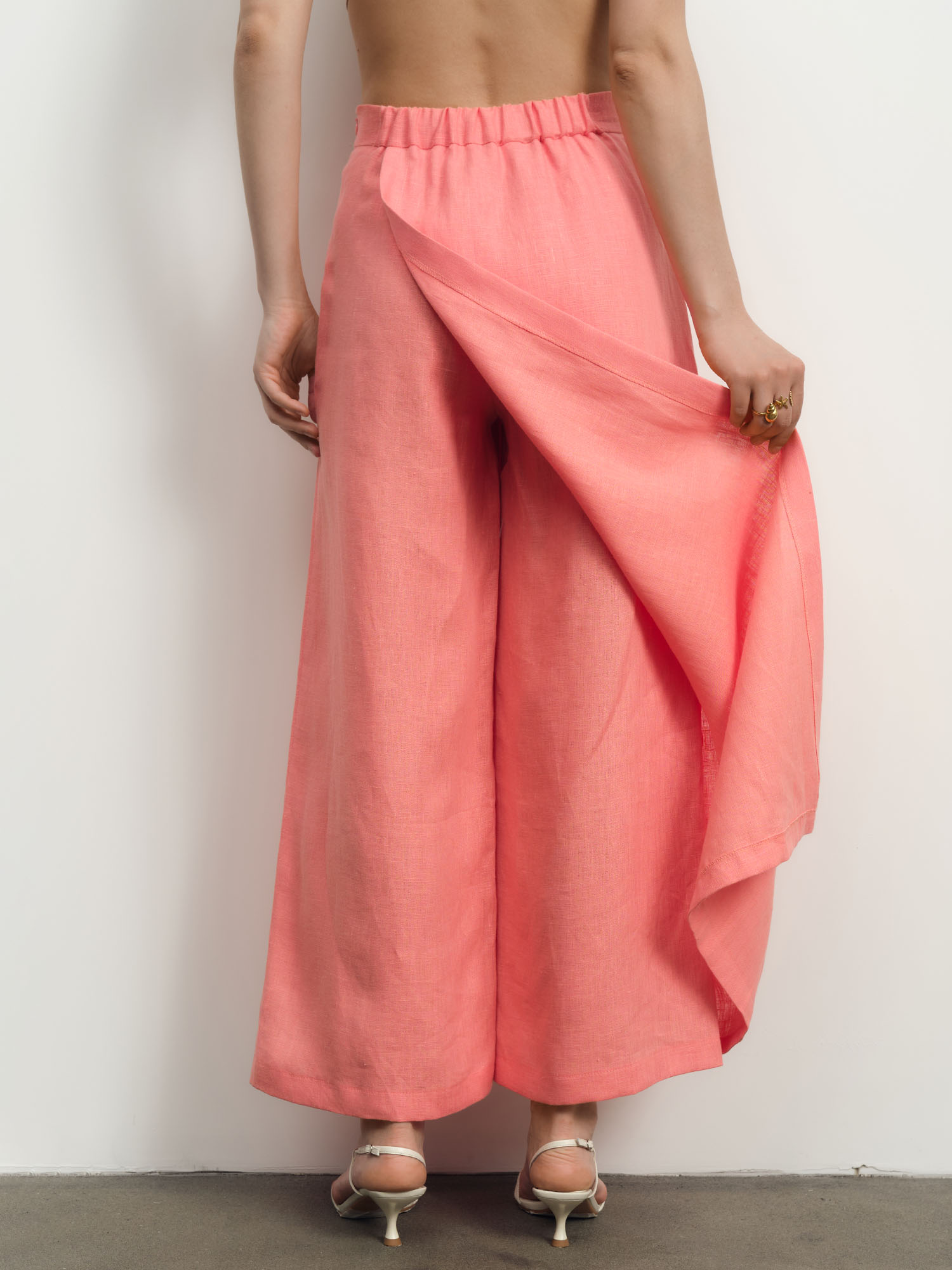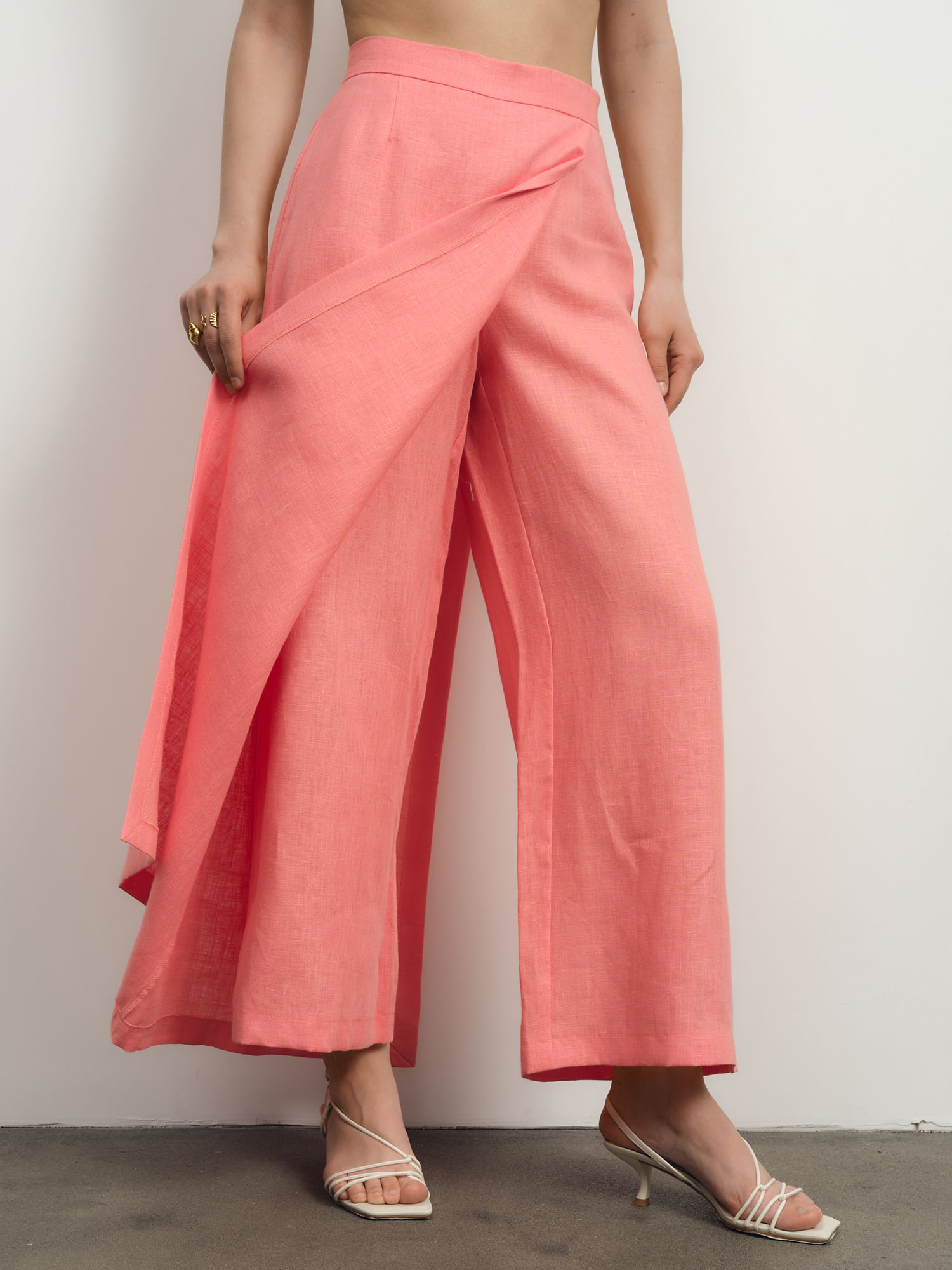 Юбка-брюки льняная 10990 коралловая