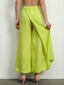 Свободный расклешенный силуэт с эффектом юбки. Конструкция модели обеспечивает свободу движений и визуальную легкость.