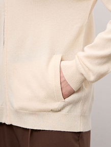 Элегантный кардиган из натурального кашемира — универсальная модель для создания спокойных, утончённых образов. Кремовый оттенок подчёркивает мягкость материала и легко сочетается с базовым гардеробом. Кардиган подходит как для повседневных, так и для более аккуратных офисных комплектов.